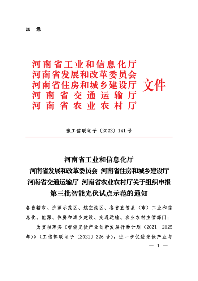 11月24日,河南省工信廳、發(fā)改委、住建廳、交通廳、農業(yè)廳等聯(lián)合下發(fā)《關于組織申報第三批智能光伏試點示范的通知》,對示范企業(yè)、示范項目予以支持,包括: