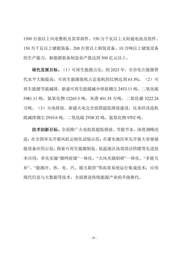 近日,通遼市能源局印發(fā)《通遼市百億級(jí)現(xiàn)代能源示范產(chǎn)業(yè)集群發(fā)展規(guī)劃》,規(guī)劃到2025年,全市煤炭產(chǎn)能新增1535萬(wàn)噸,新增電源裝機(jī)1940萬(wàn)千瓦,其中火電520萬(wàn)千瓦,風(fēng)電900萬(wàn)千瓦,光伏發(fā)電500萬(wàn)千瓦,生物質(zhì)發(fā)電20萬(wàn)千瓦。