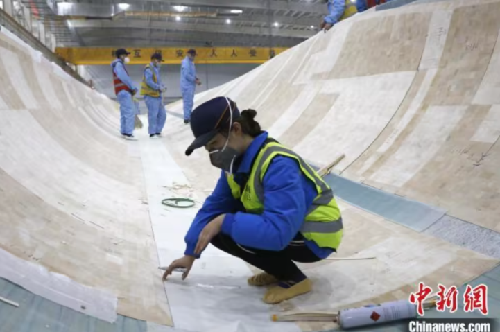 3月7日,在新疆木壘縣東方風(fēng)電新能源有限公司工人們正在進行風(fēng)電葉片前期鋪層工作。陶拴科攝