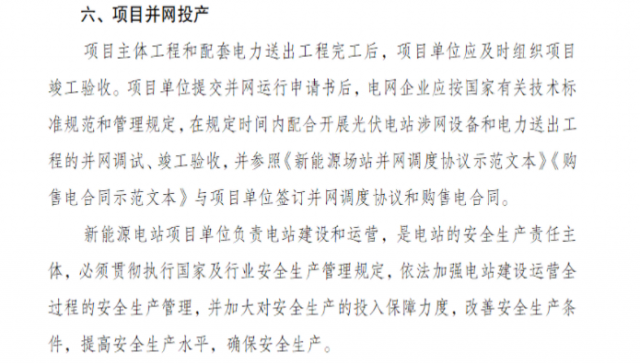列入年度建設(shè)方案的項目,完成備案后2個月內(nèi)應(yīng)實現(xiàn)開工(辦理用林用地、環(huán)保水保、接入系統(tǒng)審批等開工前期手續(xù)的時間可剔除,剔除時間最長不超過2個月),原則上光伏項目開工后8個月內(nèi)應(yīng)具備投產(chǎn)條件,自開工之日起1年內(nèi)應(yīng)具備全容量并網(wǎng)條件;風(fēng)電項目開工后12個月內(nèi)應(yīng)具備投產(chǎn)條件,自開工之日起18個月內(nèi)應(yīng)具備全容量并網(wǎng)條件。