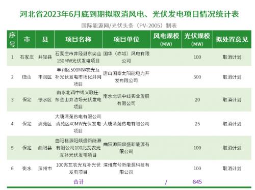 河北省2023年6月底到期風電、光伏發(fā)電項目擬調整情況公示
