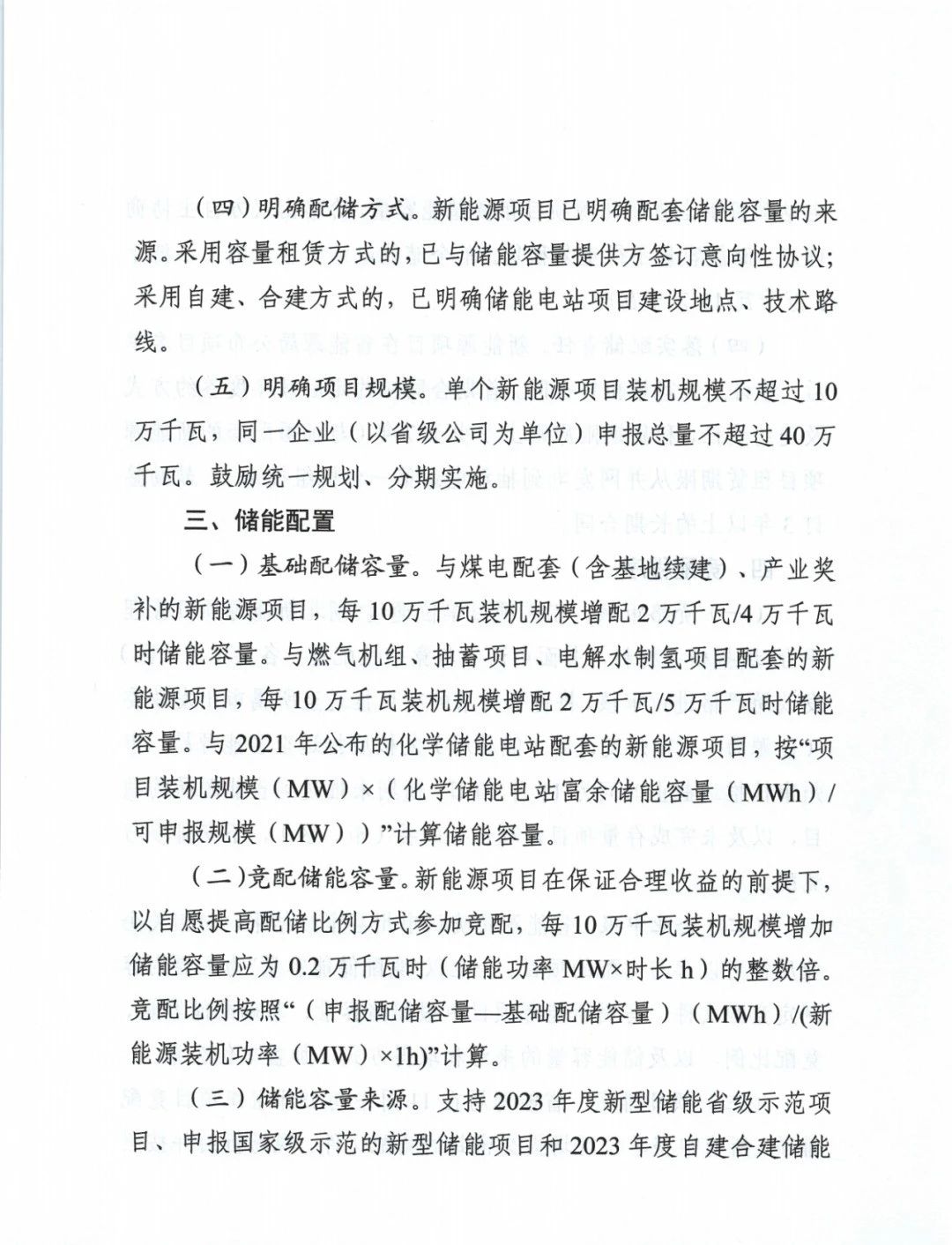 文件明確表示,根據(jù)項(xiàng)目的不同類型,按照20%/2小時(shí)(2.5小時(shí))配置儲(chǔ)能容量,作為基礎(chǔ)條件。新能源項(xiàng)目在基礎(chǔ)配儲(chǔ)容量之外自愿提高配儲(chǔ)比例,作為競(jìng)爭(zhēng)條件,省能源局依據(jù)項(xiàng)目競(jìng)配比例從高到低安排新建項(xiàng)目。
