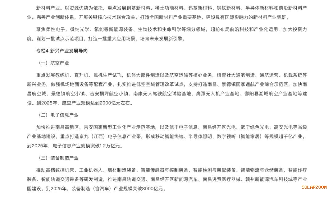 提升贛東北開放合作水平,提升“兩光一車”(光伏、光學(xué)、汽車)產(chǎn)業(yè)發(fā)展水平,打造全國光伏光學(xué)產(chǎn)業(yè)基地。加快贛西轉(zhuǎn)型升級步伐,支持新余推進(jìn)鋼鐵、鋰電、硅灰石、光伏、電子信息等產(chǎn)業(yè)集群發(fā)展,打造中部地區(qū)新型工業(yè)強(qiáng)市、國家新能源科技示范城。