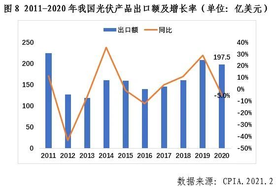 摘要:2020年,受新冠肺炎疫情的影響,全球經(jīng)濟倒退,然而我國光伏行業(yè)逆流而上,取得了令人矚目的成就,保持并延續(xù)了多項世界第一。應(yīng)用市場實現(xiàn)恢復(fù)性增長,2020年我國光伏新增裝機48.2GW,連續(xù)8年位居全球首位;累計裝機量達(dá)到253GW,連續(xù)6年位居全球首位;產(chǎn)業(yè)規(guī)模持續(xù)擴大,制造端四個主要環(huán)節(jié)實現(xiàn)兩位數(shù)增長,多晶硅產(chǎn)量39.2萬噸,連續(xù)10年位居全球首位;光伏組件產(chǎn)量124.6GW,連續(xù)14年位居全球首位;出口市場穩(wěn)中有升,光伏產(chǎn)品出口額197.5億美元,同比下降5%,但組件出口量則達(dá)到78.8GW,創(chuàng)歷史新高,同比增長18.3%。