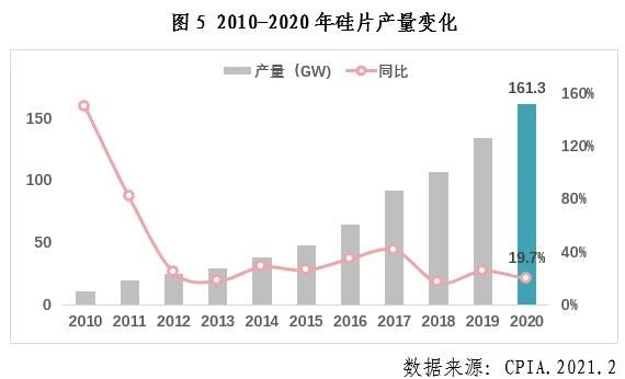 (二)產(chǎn)業(yè)規(guī)模持續(xù)擴大盡管受到年初的疫情沖擊、7-8月多晶硅料企業(yè)安全事故及新疆地區(qū)疫情導(dǎo)致的硅料供應(yīng)緊張、以及7月開始由于光伏玻璃、EVA膠膜等供應(yīng)緊張導(dǎo)致的原輔材料價格上漲等黑天鵝事件,我國光伏產(chǎn)業(yè)在國內(nèi)外市場的推動下,規(guī)模持續(xù)擴大。其中,多晶硅產(chǎn)量39.2萬噸,同比增長14.6%;硅片產(chǎn)量161.3GW,同比增長19.7%;電池片產(chǎn)量134.8GW,同比增長22.2%;組件產(chǎn)量124.6GW,同比增長26.4%。
