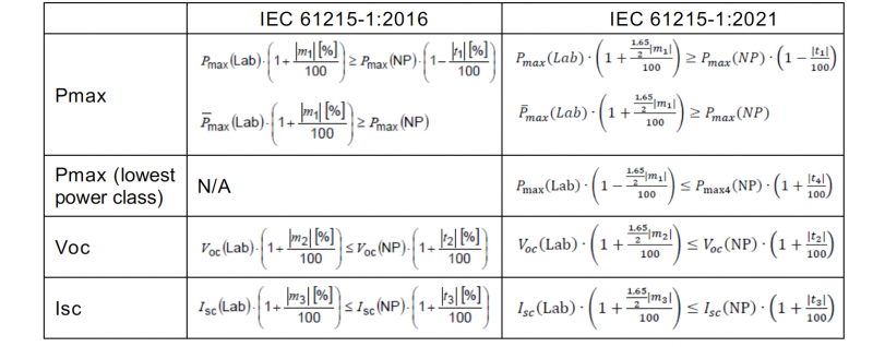 4. 判定標(biāo)準(zhǔn)更新- Gate No.1判定要求:a)如果測試樣本數(shù)量小于10,所有Gate1判定必須通過;b)如果測試樣本數(shù)量不小于10,允許1塊組件的Gate1判定失敗;c)如果以上條件不滿足,每塊Gate1判定失敗的組件需額外增加2塊新樣品重測;d)如果仍不滿足,可重新定義銘牌參數(shù)或全序列重新進(jìn)行測試。- Gate No.1銘牌驗證: