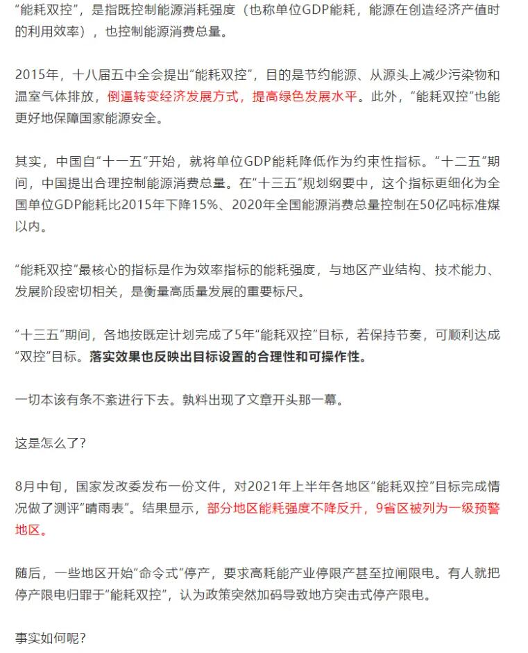 編者按:9月11日,國(guó)家發(fā)展改革委印發(fā)《完善能源消費(fèi)強(qiáng)度和總量雙控制度方案》,要求各地政府以能源資源配置更加合理、利用效率大幅提高為導(dǎo)向,以建立科學(xué)管理制度為手段,以提升基礎(chǔ)能力為支撐,強(qiáng)化和完善能耗雙控制度,深化能源生產(chǎn)和消費(fèi)革命,推進(jìn)能源總量管理、科學(xué)配置、全面節(jié)約,推動(dòng)能源清潔低碳安全高效利用,倒逼產(chǎn)業(yè)結(jié)構(gòu)、能源結(jié)構(gòu)調(diào)整,助力實(shí)現(xiàn)碳達(dá)峰、碳中和目標(biāo),促進(jìn)經(jīng)濟(jì)社會(huì)發(fā)展全面綠色轉(zhuǎn)型和生態(tài)文明建設(shè)實(shí)現(xiàn)新進(jìn)步。