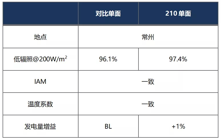 2. 210組件的低輻照性能優(yōu)勢顯著,對發(fā)電量有明顯提升。