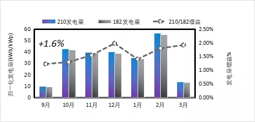 圖2 210/182單面發(fā)電量對比