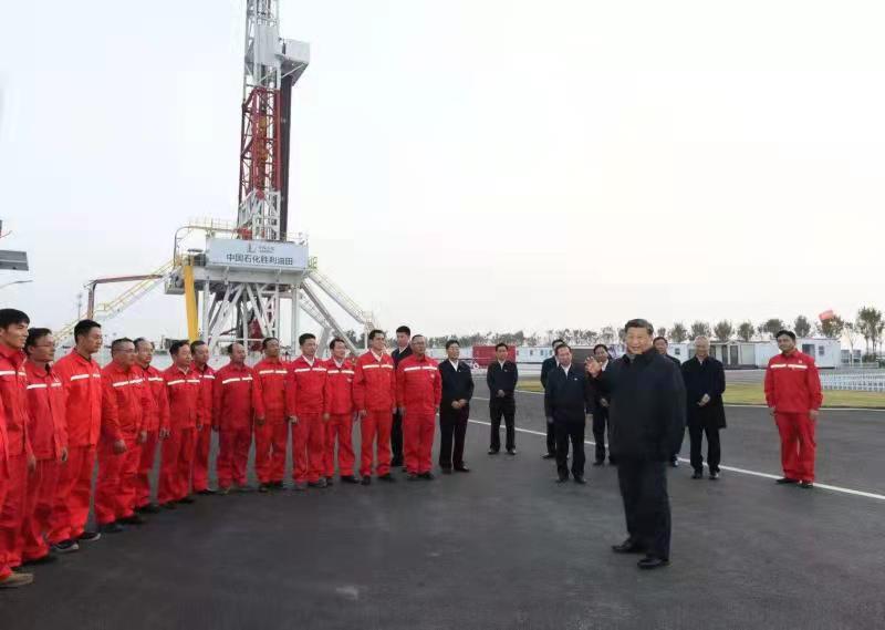 10月21日下午,習(xí)近平總書記來(lái)到勝利油田,登上鉆井平臺(tái),察看作業(yè)情況,看望慰問(wèn)石油工人。今年是勝利油田發(fā)現(xiàn)60周年。習(xí)近平代表黨中央向廣大石油職工致以誠(chéng)摯問(wèn)候。習(xí)近平指出,石油能源建設(shè)對(duì)我們國(guó)家意義重大,中國(guó)作為制造業(yè)大國(guó),要發(fā)展實(shí)體經(jīng)濟(jì),能源的飯碗必須端在自己手里。希望你們?cè)賱?chuàng)佳績(jī)、再立新功。