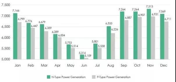 得益于N型組件更優(yōu)的溫度系數和輻照性能,在10月和11月(澳大利亞夏季),N型組件發(fā)電量高于PERC雙面組件5.5%,而在5月和6月(澳大利亞冬季),N型組件發(fā)電量高于P型雙面組件4.3%。每月數據顯示發(fā)電量的增長基本穩(wěn)定,而2020年12月澳大利亞雨季延長,雖然組件發(fā)電增益低于正常值,但N型組件的發(fā)電量仍比P型組件高5.3%。