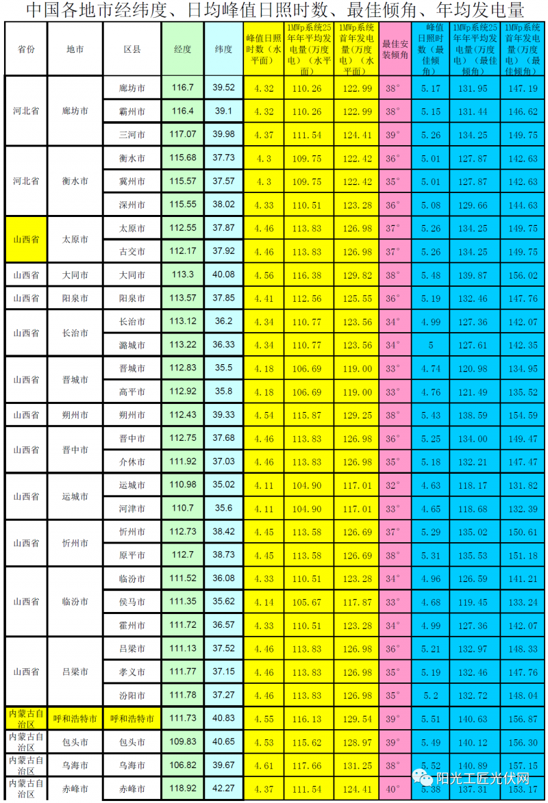 4、以1MWp組件的裝機容量作為發(fā)電量計算依據