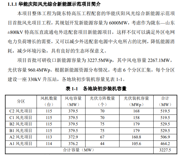 隴東特高壓工程配套新能源華能慶陽風(fēng)光綜合新能源示范項(xiàng)目: