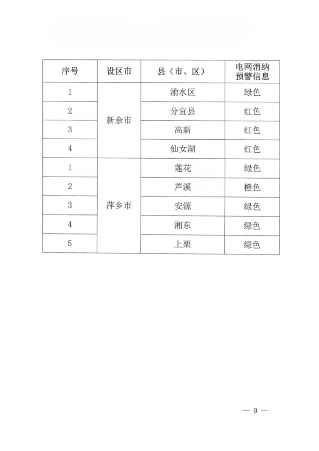 文件指出,由于新能源可開(kāi)發(fā)容量呈現(xiàn)飽和狀態(tài),故給出部分市縣電網(wǎng)新能源可開(kāi)放容量表。江西的94個(gè)縣市區(qū)中,已經(jīng)有27個(gè)電網(wǎng)消納預(yù)警信息為紅色,12個(gè)為橙色。