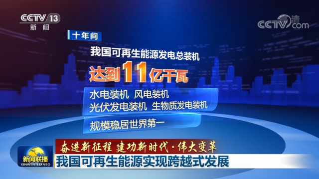 十年間,我國可再生能源發(fā)電總裝機達到11億千瓦,水電、風電、光伏發(fā)電、生物質發(fā)電裝機規(guī)模穩(wěn)居世界第一。其中,風電光伏并網(wǎng)裝機合計6.7億千瓦,是2012年的近90倍。