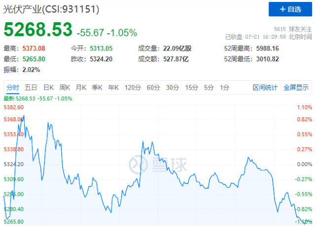 7月21日,光伏板塊延續(xù)分化行情,HJT概念股漲幅居前,而逆變器、硅料、硅片概念股跌幅居前。受此影響,中證光伏產(chǎn)業(yè)指數(shù)(CSI:931151)報(bào)收5269點(diǎn),收跌1.05%。