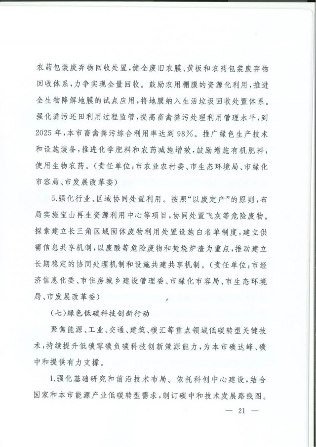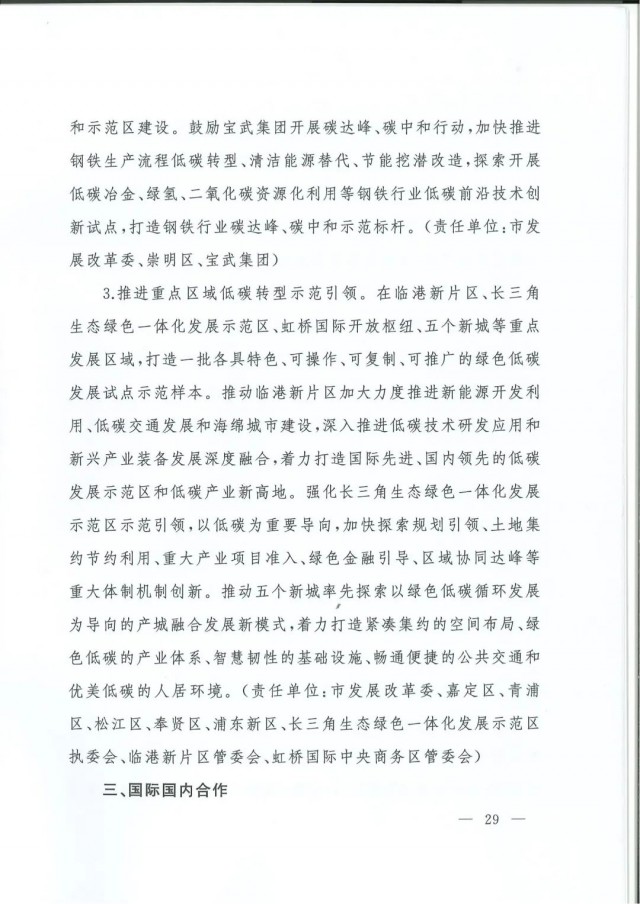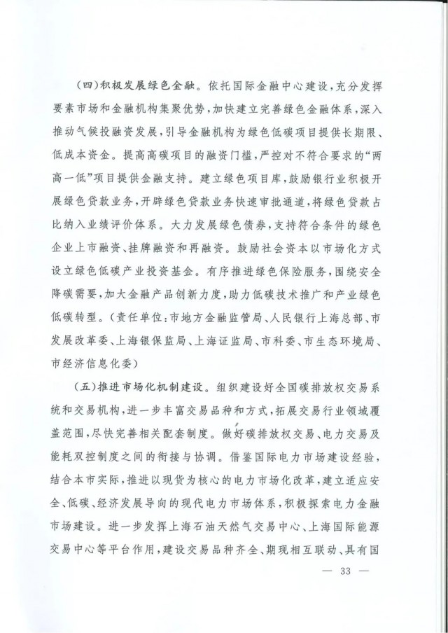 近日,上海市人民政府辦公廳印發(fā)了《上海市碳達(dá)峰實(shí)施方案》?!斗桨浮访鞔_主要目標(biāo):到2025年,單位生產(chǎn)總值二氧化碳排放確保完成國(guó)家下達(dá)指標(biāo)。到2030年單位生產(chǎn)總值二氧化碳排放比2005年下降70%,確保2030年前實(shí)現(xiàn)碳達(dá)峰。并計(jì)劃組織實(shí)施“碳達(dá)峰十大行動(dòng)”,包括能源綠色低碳轉(zhuǎn)型行動(dòng)、節(jié)能降碳增效行動(dòng)、工業(yè)/城鄉(xiāng)建設(shè)/交通領(lǐng)域綠色低碳行動(dòng)、循環(huán)經(jīng)濟(jì)助力降碳行動(dòng)、綠色低碳科技創(chuàng)新行動(dòng)、碳匯能力鞏固提升行動(dòng)、綠色低碳全民行動(dòng)、綠色低碳區(qū)域行動(dòng)。