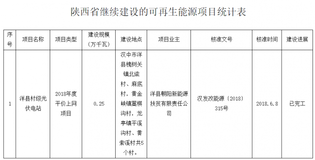 咸陽關(guān)于“十三五”存量可再生能源項目信息公示