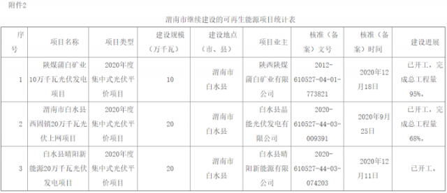 2.渭南市繼續(xù)建設(shè)的可再生能源項目統(tǒng)計表