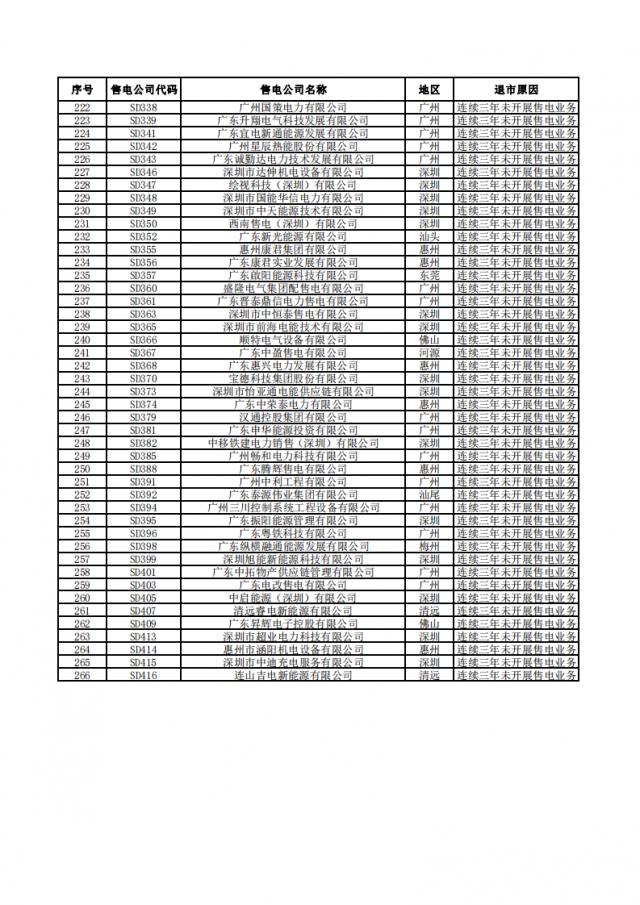 廣東電力交易中心今日發(fā)布通知,對(duì)266家售電公司實(shí)施強(qiáng)制退市,從電力市場主體目錄中刪除,并注銷其電力交易平臺(tái)賬號(hào)。