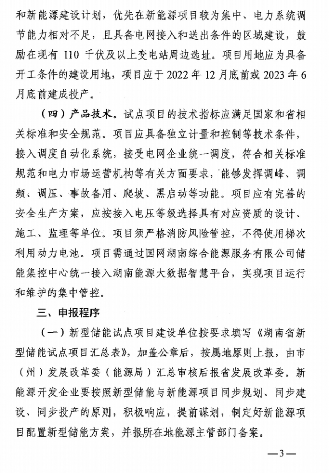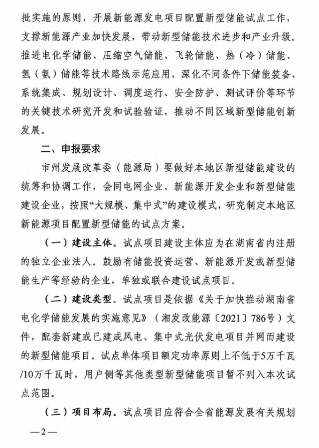 日前,湖南省發(fā)展和改革委員會(huì)發(fā)布《關(guān)于開展2022年新能源發(fā)電項(xiàng)目配置新型儲(chǔ)能試點(diǎn)工作的通知》。