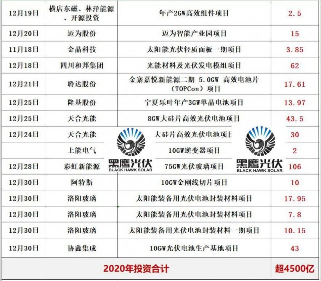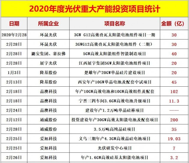 四.2020光伏新項目投資超4000億!單個項目投資額在10億元以上的就多達(dá)82個,50億元以上的有22個。