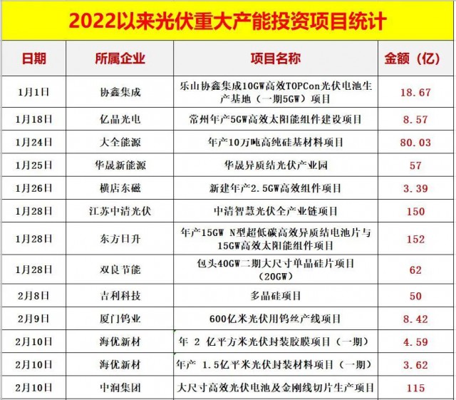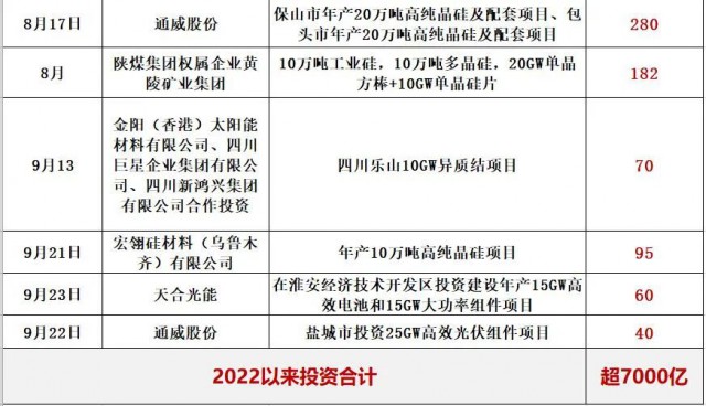 二.2022以來,光伏產(chǎn)能投資已超過7000億,特別是龍頭企業(yè)動輒百億的投資(公告)頻頻出現(xiàn),跨界者持續(xù)涌入,產(chǎn)能投資還在提速,階段性絕對過剩風(fēng)險加劇。