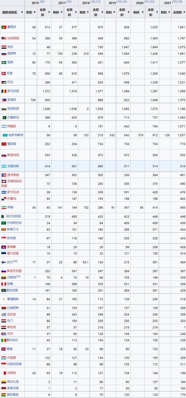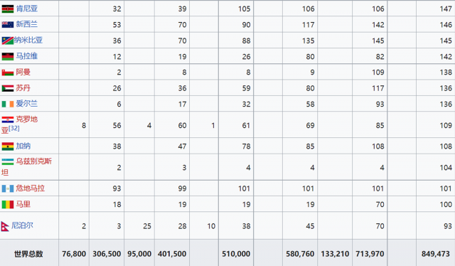 國際可再生能源署2021年度世界各國光伏裝機統(tǒng)計(單位:MW)