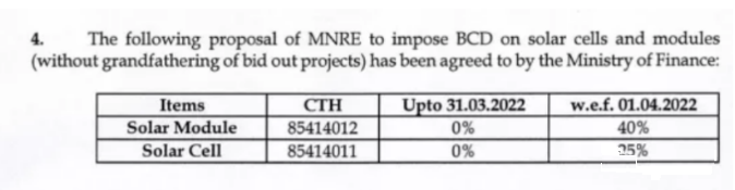 印度太陽能制造商協(xié)會(huì)(ISMA)請?jiān)柑岢龊?,印度政府?022年4月1日起對光伏電池和組件分別征收25%和40%的基本關(guān)稅,征收的關(guān)稅涵蓋了被調(diào)查產(chǎn)品的整個(gè)范圍,一定程度上緩解了印度本土光伏行業(yè)的價(jià)格壓力。