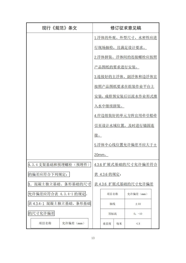 根據(jù)局部修訂條文對照表,新增水上光伏測繪、施工以及安全等一系列要求。例如,水上光伏發(fā)電站水下測繪工作應完成,水下障礙物應全部清理完畢。如施工場地有航道交叉,應采取相應安全保障措施。對于水面作業(yè)、作業(yè)面高度在2m及以上、作業(yè)面坡度大于30゜等特殊作業(yè)環(huán)境的項目,應編制專項施工方案,采取相應的安全防護措施。水上作業(yè)平臺應符合下列要求:1.水上作業(yè)平臺的設置應經充分論證,并應制定專項設置方案。2.水上作業(yè)平臺的防墜入安全防護措施應按要求設置到位。