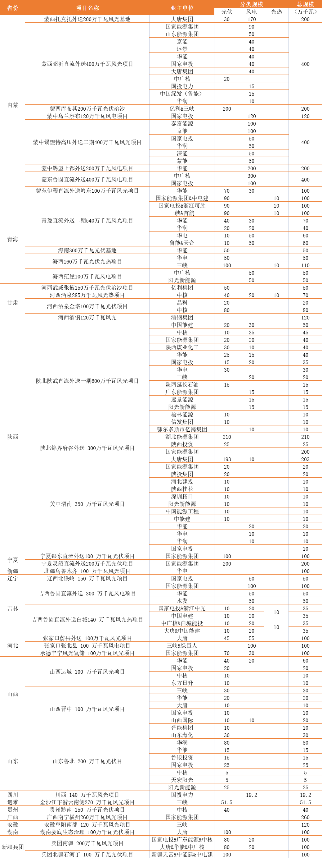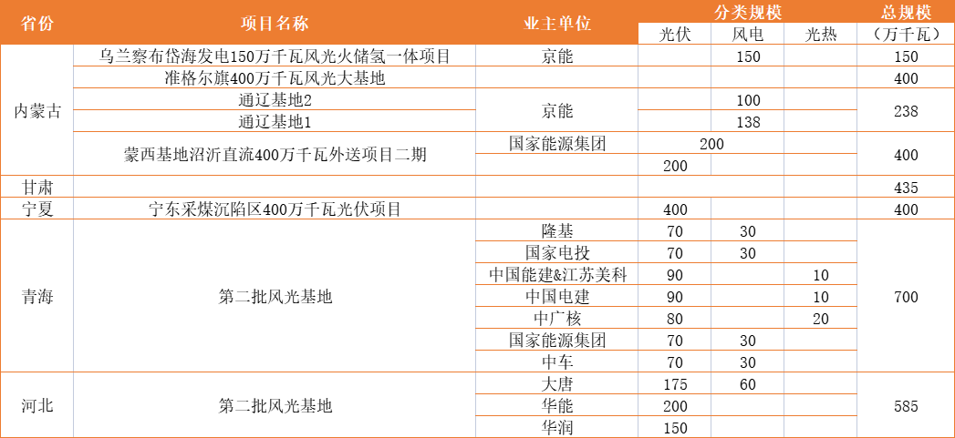 說明:上述數(shù)據(jù)通過公開信息整理,各企業(yè)數(shù)據(jù)存在未明確項目,具體以企業(yè)官方數(shù)據(jù)為準。此外,大基地存在聯(lián)合體業(yè)主,本表數(shù)據(jù)以牽頭企業(yè)為主。