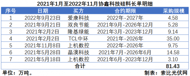 協(xié)鑫科技簽署7筆長單,規(guī)模合計(jì)81.43萬噸。