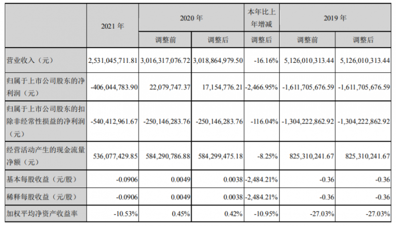 4月13日,愛康科技發(fā)布2021年報。數(shù)據(jù)顯示:實現(xiàn)營業(yè)收入25.31億元,同比減少16.16%;實現(xiàn)歸屬于上市公司股東的凈利潤-4.06億元,同比減少2466.95%;實現(xiàn)歸屬于上市公司股東的扣除非經常性損益的凈利潤-5.40億元,同比減少116.04%;基本每股收益-0.0906元/股,同比減少2484.21%;加權平均凈資產收益率-10.53%,同比減少10.95%。