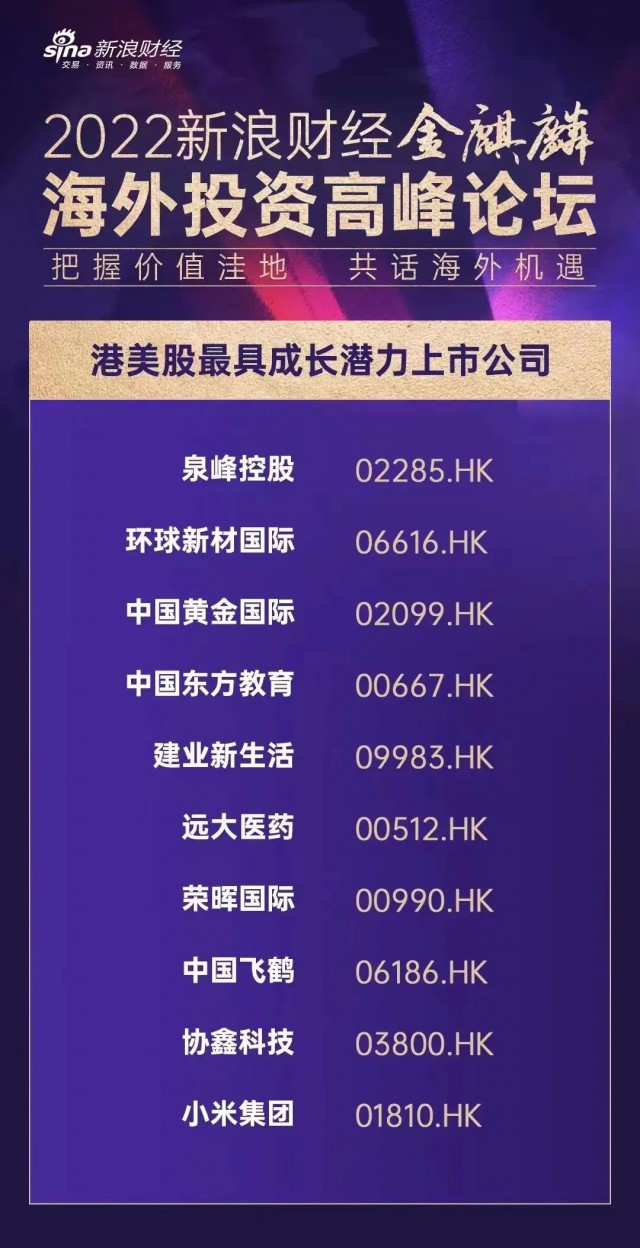 2022年9月23日,在新浪財(cái)經(jīng)主辦的2022年金麒麟海外投資峰會(huì)暨港美股最佳上市公司評(píng)選活動(dòng)中,協(xié)鑫科技(03800.HK)憑借在光伏材料領(lǐng)域的科技創(chuàng)新與行業(yè)貢獻(xiàn),榮膺“2022新浪財(cái)經(jīng)港美股最具成長(zhǎng)潛力上市公司”,協(xié)鑫科技董事局主席朱共山先生榮獲“2022新浪財(cái)經(jīng)港美股最具領(lǐng)導(dǎo)力企業(yè)家”稱號(hào),獲授該稱號(hào)的還有曹德旺、王傳福等10位杰出企業(yè)家。