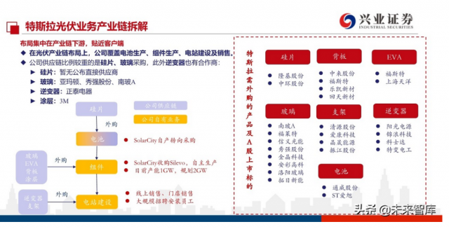據(jù)興業(yè)證券特斯拉光伏業(yè)務產(chǎn)業(yè)鏈拆解圖可以看出,特斯拉的組件幾乎全都依靠著國內(nèi)廠商。