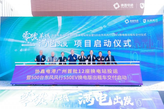 本次啟動站點為協(xié)鑫電港自研單通道換電站,單站每日可服務336車次,單次換電僅需90秒,羊城首批入網(wǎng)出租車司機將享受極致補能體驗?;顒蝇F(xiàn)場,東風柳汽乘用車銷售公司副總經(jīng)理陳經(jīng)新、協(xié)鑫能科乘用車事業(yè)部總經(jīng)理諸葛環(huán)環(huán)代表雙方發(fā)布聯(lián)名款東風風行S50EV換電版出租車?!皡f(xié)鑫能科”與“東風風行”的雙logo成為這款車型的醒目尾標,充分體現(xiàn)了協(xié)鑫能科以車為核,與車企深度融合,雙向賦能,助力廣州在城市交通領域率先實現(xiàn)“雙碳”目標的決心。隨著未來更多車輛投入運營,將有更多市民體驗到S50EV的優(yōu)秀性能和協(xié)鑫電港的90秒換電優(yōu)勢。