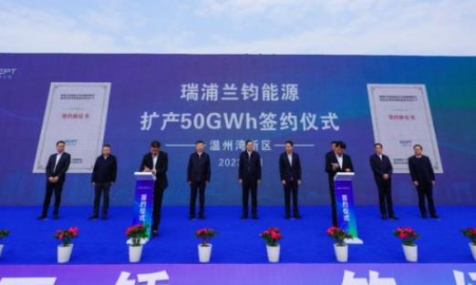 龍灣區(qū)委書記周一富主持儀式,溫州高新區(qū)黨工委副書記、溫州高新區(qū)(經(jīng)開區(qū))管委會常務(wù)副主任謝忠誠和瑞浦蘭鈞能源股份有限公司董事長曹輝代表溫州高新區(qū)(經(jīng)開區(qū))和青山實業(yè)瑞浦蘭鈞對瑞浦蘭鈞擴產(chǎn)50GWh項目進(jìn)行現(xiàn)場簽約。