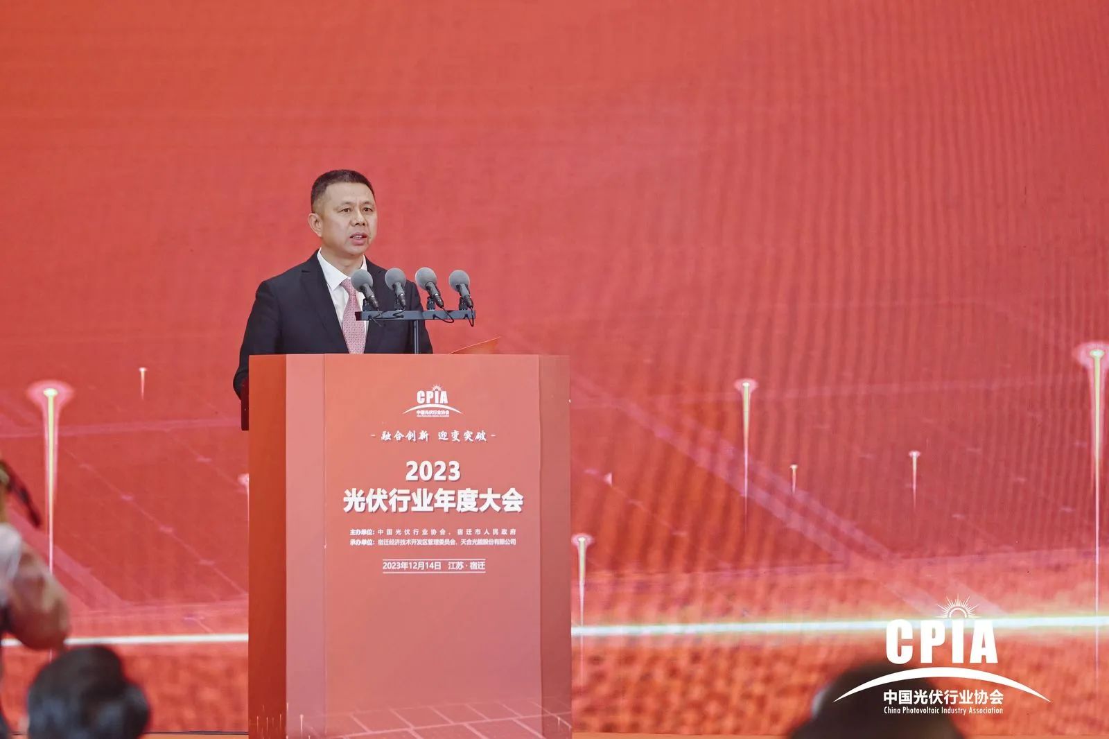 融合創(chuàng)新、迎變突破。12月14日,2023光伏行業(yè)年度大會在宿遷開幕,一場關于光伏產業(yè)高質量發(fā)展的大討論正在“光伏之都”進行,中國光伏行業(yè)協(xié)會名譽理事長、天合光能股份有限公司董事長兼CEO高紀凡出席大會并致辭,倡導多方協(xié)作、共建生態(tài)、共商共創(chuàng)共享新型能源體系、共促行業(yè)高質量發(fā)展。
