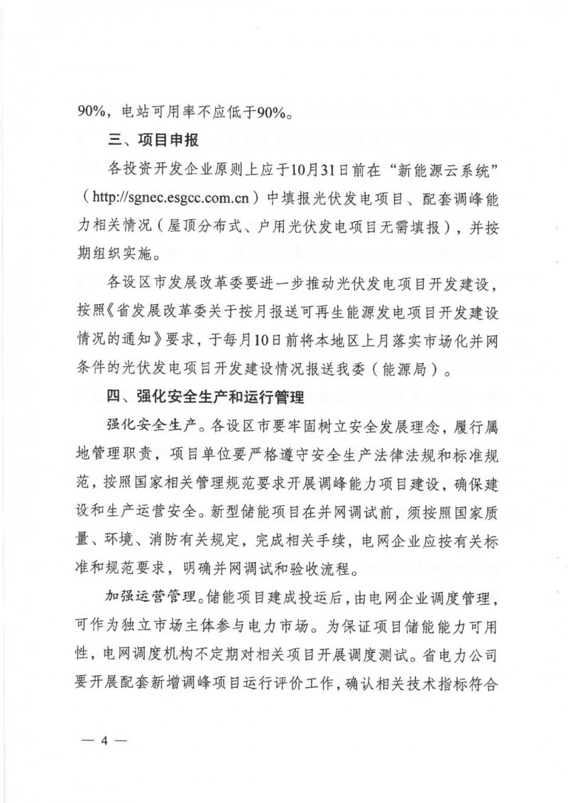 2021年落實(shí)市場(chǎng)化并網(wǎng)條件的光伏發(fā)電項(xiàng)目:原則上應(yīng)在2023年6月底前建成并網(wǎng)。配套新增調(diào)峰能力項(xiàng)目原則上應(yīng)為2021年1月1日以后投產(chǎn)的項(xiàng)目,應(yīng)與光伏發(fā)電項(xiàng)目同步建成、同步并網(wǎng),可在光伏發(fā)電項(xiàng)目所在地建設(shè),也可以異地建設(shè),但長(zhǎng)江以北市場(chǎng)化并網(wǎng)的光伏發(fā)電項(xiàng)目所建設(shè)或購(gòu)買的調(diào)峰能力原則上須在長(zhǎng)江以北區(qū)域建成。