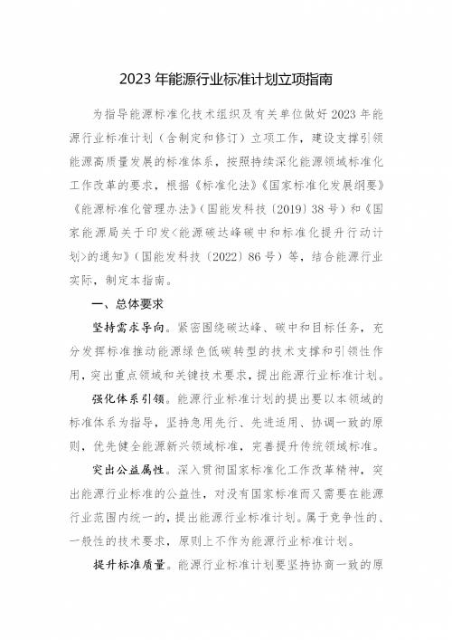 國家能源局綜合司關(guān)于印發(fā)《2023年能源行業(yè)標(biāo)準(zhǔn)計劃立項指南》的通知