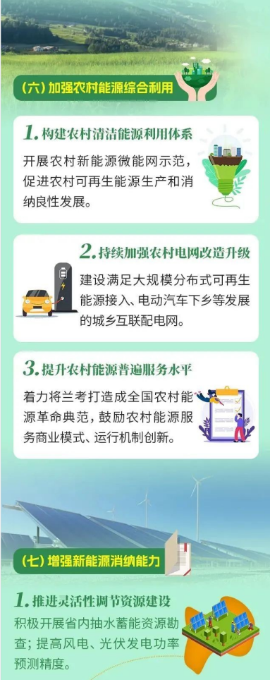 利用農(nóng)村建筑屋頂、空閑土地等推進(jìn)分布式光伏發(fā)電發(fā)展。深入實(shí)施北方地區(qū)清潔取暖工程,因地制宜推動(dòng)太陽(yáng)能、地?zé)崮?、農(nóng)林生物質(zhì)直燃、生物成型燃料供暖,構(gòu)建多能互補(bǔ)清潔供暖體系。著力提高農(nóng)林廢棄物、畜禽糞便資源化利用率,助力農(nóng)村人居環(huán)境整治和美麗鄉(xiāng)村建設(shè)。提升農(nóng)村用能清潔化、電氣化水平,開(kāi)展農(nóng)村新能源微能網(wǎng)示范,促進(jìn)農(nóng)村可再生能源生產(chǎn)和消納良性發(fā)展。