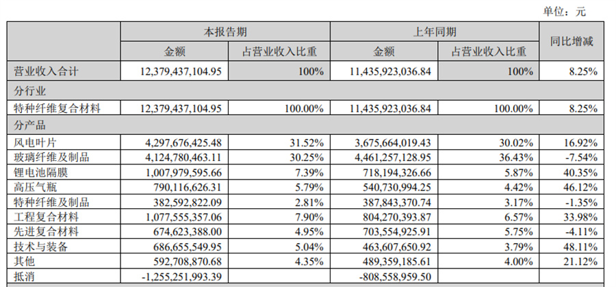 中材科技作為頭部葉片企業(yè),報(bào)告期內(nèi),合計(jì)銷售風(fēng)電葉片9.6GW,同比增長27.4%(其中,中復(fù)連眾銷量2.3GW),實(shí)現(xiàn)風(fēng)電葉片銷售收入43.0億元,歸母凈利潤3.5億元,毛利率提升至17.2%,同比提升11.3個(gè)百分點(diǎn)。