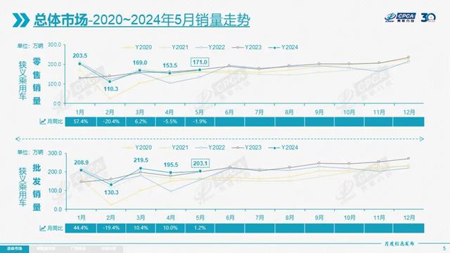 隨著“以舊換新”政策落地實施、各地相應(yīng)政策措施出臺與跟進,加之車市新品價格戰(zhàn)階段性降溫,5月乘用車市場進入相對較好的發(fā)展階段。據(jù)乘聯(lián)會最新統(tǒng)計數(shù)據(jù)顯示,5月全國乘用車市場零售171萬輛,同比下降1.9%,環(huán)比增長11.4%,1-5月累計零售807.3萬輛,同比增長5.7%。