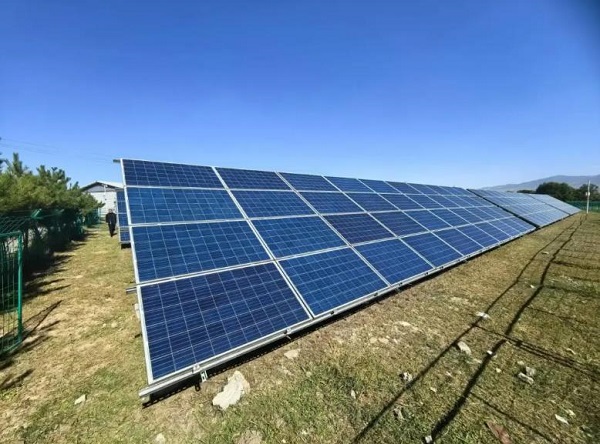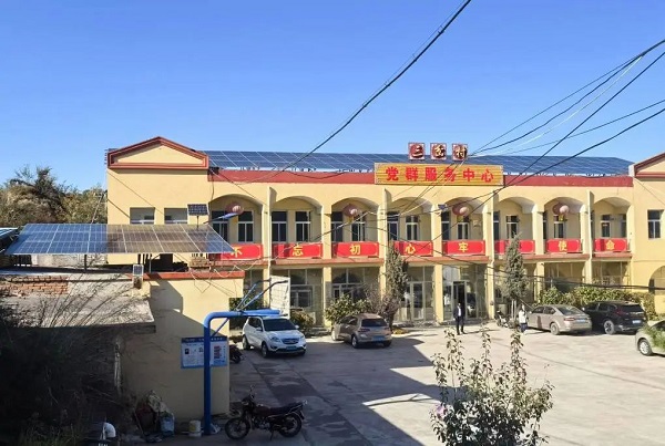 正值午時,秋高氣爽。在山西省忻州市五寨縣三岔鎮(zhèn)三岔村黨群服務中心的大院里,一排排深藍色的光伏板依序排列于四周屋頂,在陽光的照耀下熠熠生輝,格外引人注目。