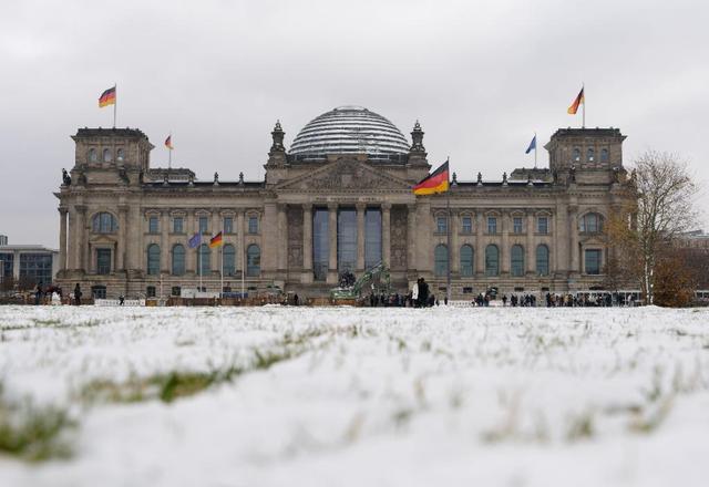 11月20日,在德國柏林,德國國會大廈前的草坪被積雪覆蓋。新華社發(fā)(斯特凡·蔡茨攝)