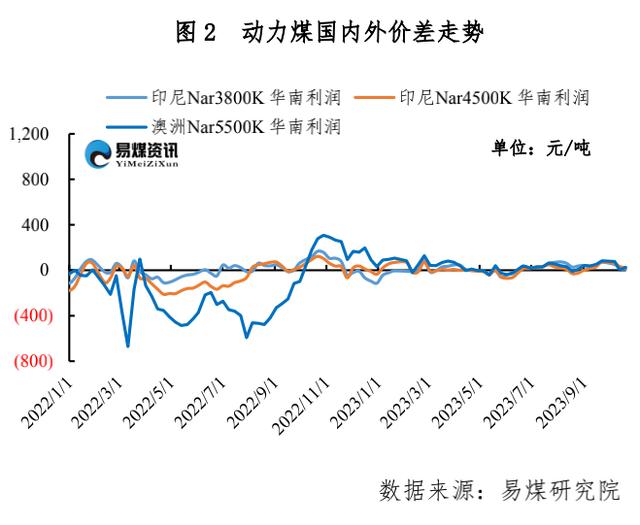 就進(jìn)口市場(chǎng)而言,沿海電廠庫(kù)存環(huán)比回落但依舊位于歷史高位,兩廣地區(qū)和福建庫(kù)存較為充裕,電廠仍以剛需采購(gòu)為主,議價(jià)話語(yǔ)權(quán)較高,但海外煤價(jià)支撐較為堅(jiān)挺,進(jìn)口煤采購(gòu)成本依舊較高,而內(nèi)陸電廠進(jìn)入過(guò)冬補(bǔ)庫(kù)時(shí)期,短期內(nèi)貿(mào)價(jià)格維持穩(wěn)定,故短期進(jìn)口煤價(jià)支撐仍在。