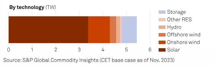 注:來自標(biāo)普全球商品洞察,從左至右依次為太陽能、在岸風(fēng)電、海外風(fēng)電、氫能、其他可再生能源和儲能