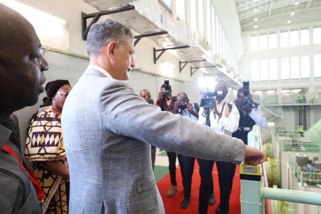 若昂·博爾熱斯為項(xiàng)目落成剪彩典禮結(jié)束后,若昂·博爾熱斯一行參觀了電站相關(guān)設(shè)施,并對(duì)電站的現(xiàn)代化設(shè)備、先進(jìn)技術(shù)和運(yùn)維能力給予高度肯定。在機(jī)房,若昂·博爾熱斯按下發(fā)電機(jī)組運(yùn)行總按鈕,正式啟動(dòng)項(xiàng)目發(fā)電。