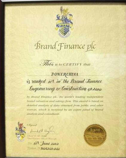 中國(guó)電建集團(tuán)入圍Brand Finance2020全球最有價(jià)值50大工程和建設(shè)品牌