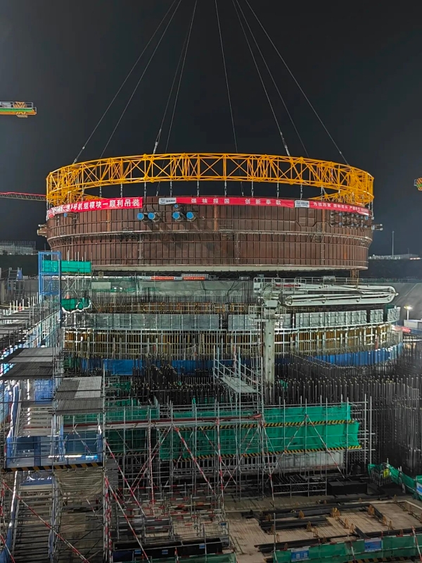 本網(wǎng)訊 2022年5月15日4時18分,海南昌江核電廠4號機組核島反應堆廠房鋼襯里模塊一吊裝就位,此次吊裝成功將為4號機組反應堆廠房內(nèi)部結構施工關鍵路徑順利推進打下堅實基礎。